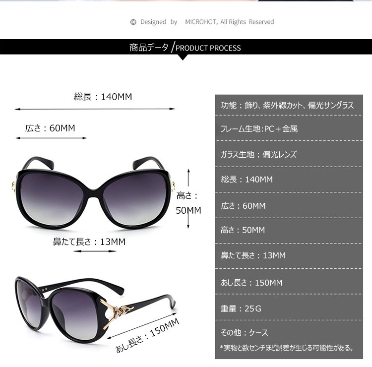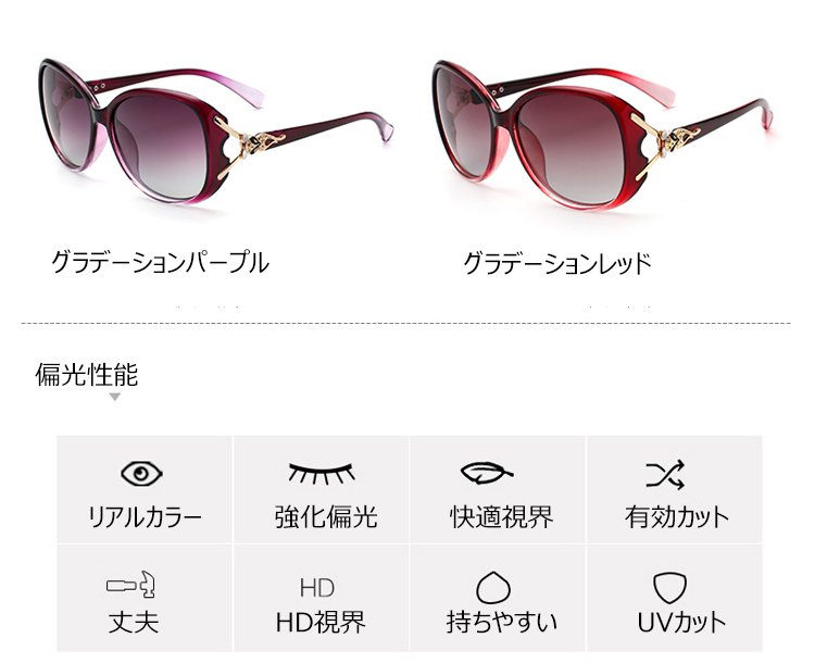 サングラス レディース 小顔 ファッション 紫外線カット 偏光レンズ